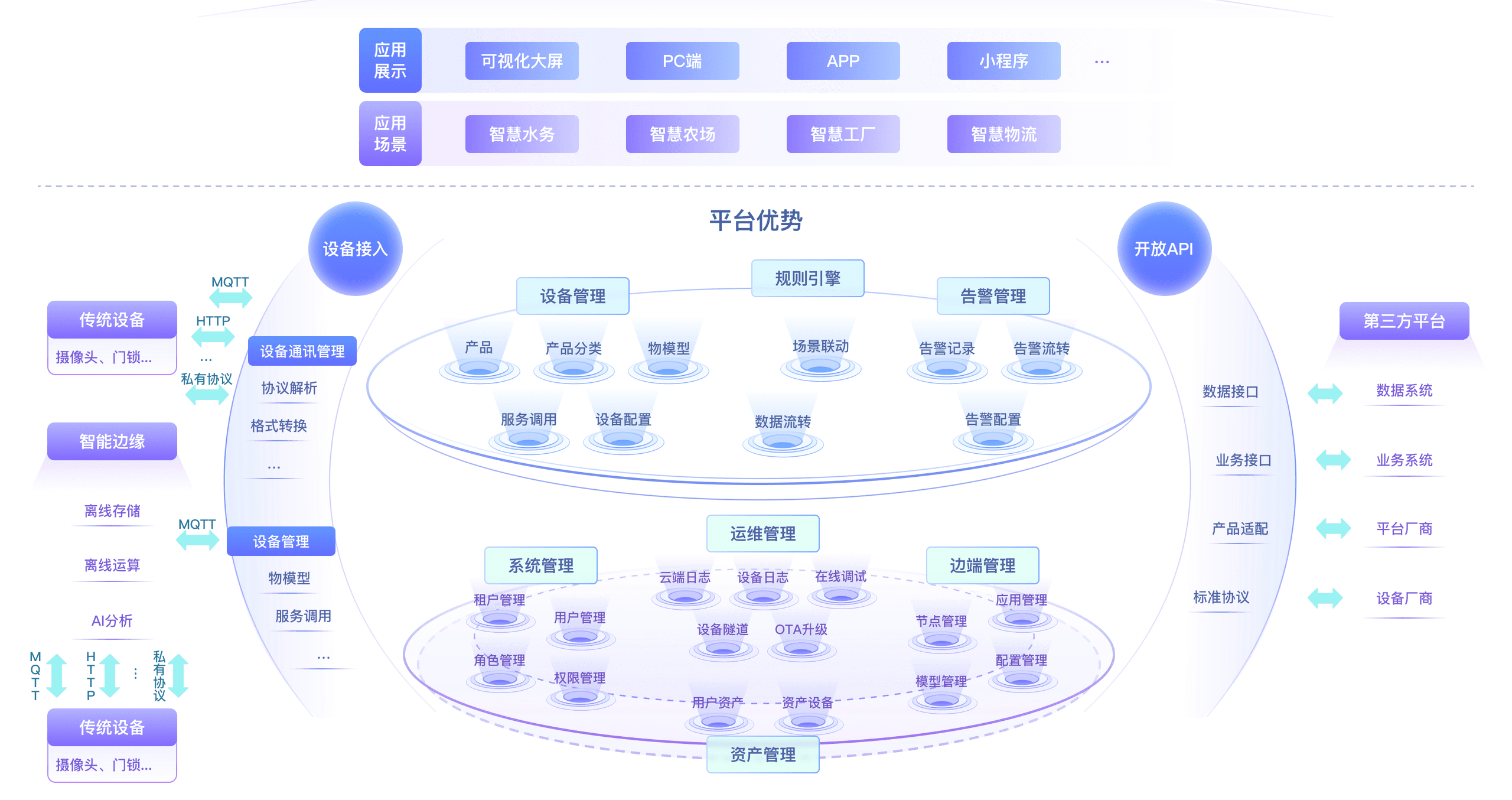 支持百万数量级传感器接入(包括第三方传感器),不同协议/接口传感设备快速选型配置。